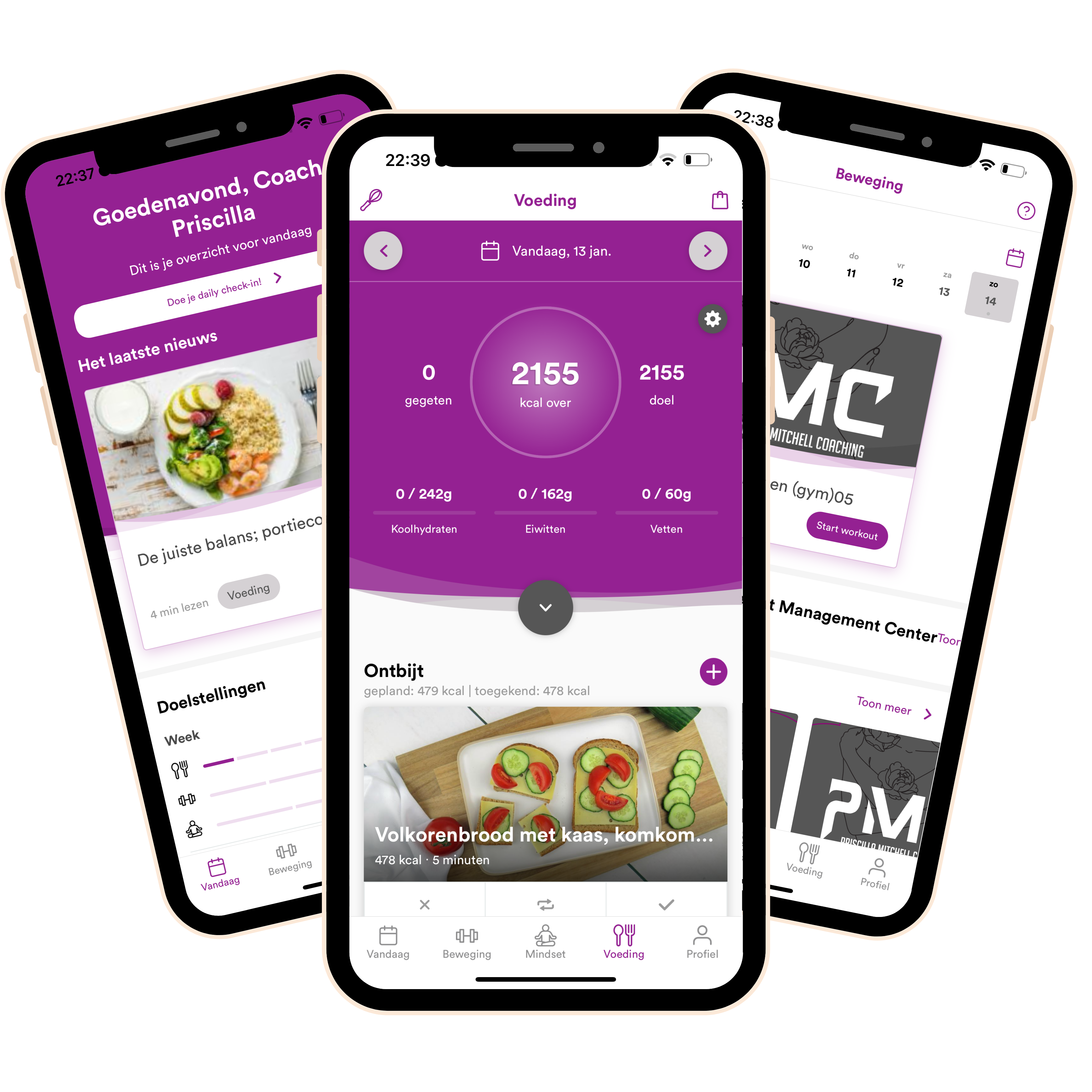 - ✅ Recepten en voedingsschema’s afgestemd op jouw persoonlijke behoefte